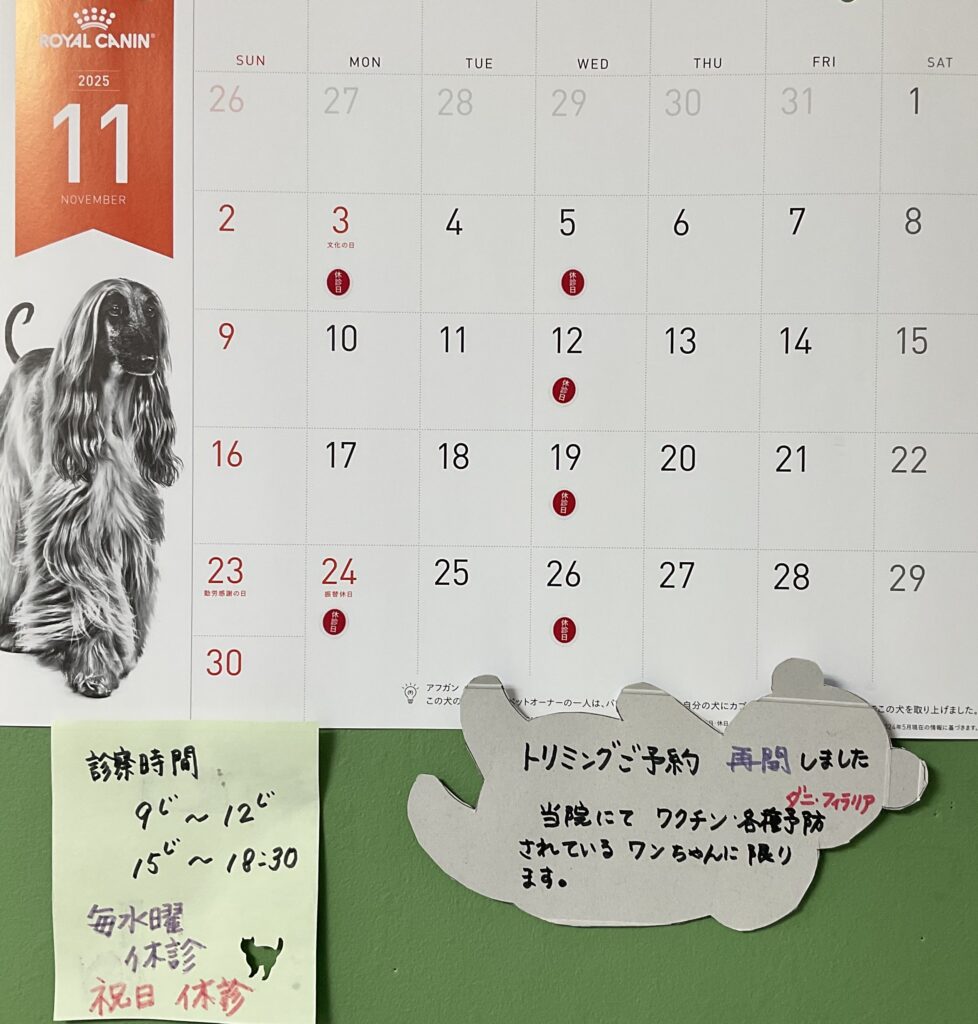 11月22日午後、11月23日午前午後、臨時休診とさせていただきます。